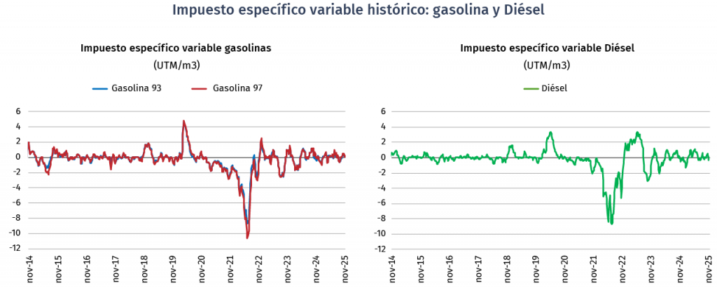 El componente variable sumado al componente base definido en la ley N° 18.502, permite obtener los valores del impuesto específico final de cada combustible incluido en MEPCO. A partir del 11 de diciembre de 2022 comienzan a regir las modificaciones introducidas por la ley N° 20.794 y el Decreto Supremo N° 1.790 que modifica su reglamento. Estas modificaciones permiten definir un impuesto específico variable diferenciado para las gasolinas según su octanaje. Además, desde el 24 de enero de 2023 comienzan a regir las modificaciones introducidas por la Ley N° 21.537 que modifica el MEPCO para evitar fluctuaciones semanales.
