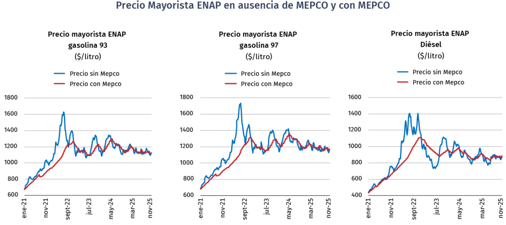 El MEPCO fue creado por la ley Nº 20.765 publicada el 09 de julio del 2014, con la finalidad de establecer un mecanismo de estabilización de los precios de venta internos de la gasolina automotriz, del petróleo diésel, del gas licuado de petróleo y del gas natural comprimido, ambos, estos últimos, de consumo vehicular. Dicho mecanismo opera a través de incrementos y rebajas a los impuestos específicos a los combustibles establecidos en la ley N° 18.502, según lo establecido en el Decreto Supremo Nº 1.119, de 2014, del Ministerio de Hacienda, que aprueba reglamento para la aplicación del MEPCO.