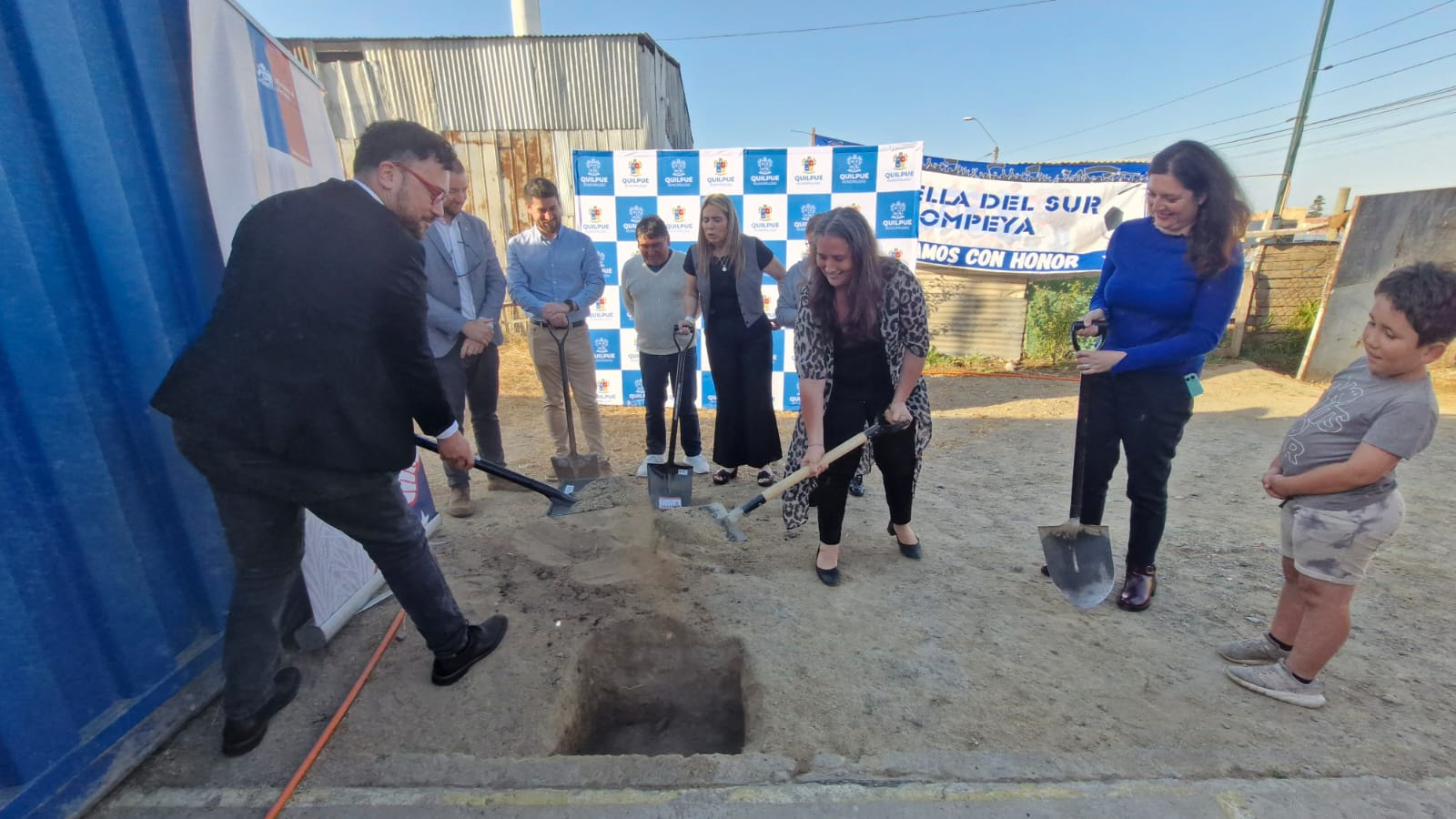 La jornada concluyó con la colocación de la primera piedra de la reconstrucción del Club Deportivo Pompeya Sur Fútbol, en la comuna de Quilpué. Esta organización comunitaria fue una de las más afectadas por los incendios de 2024, que destruyeron por completo su infraestructura.