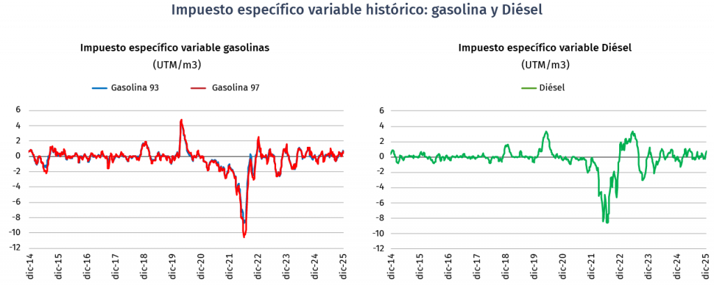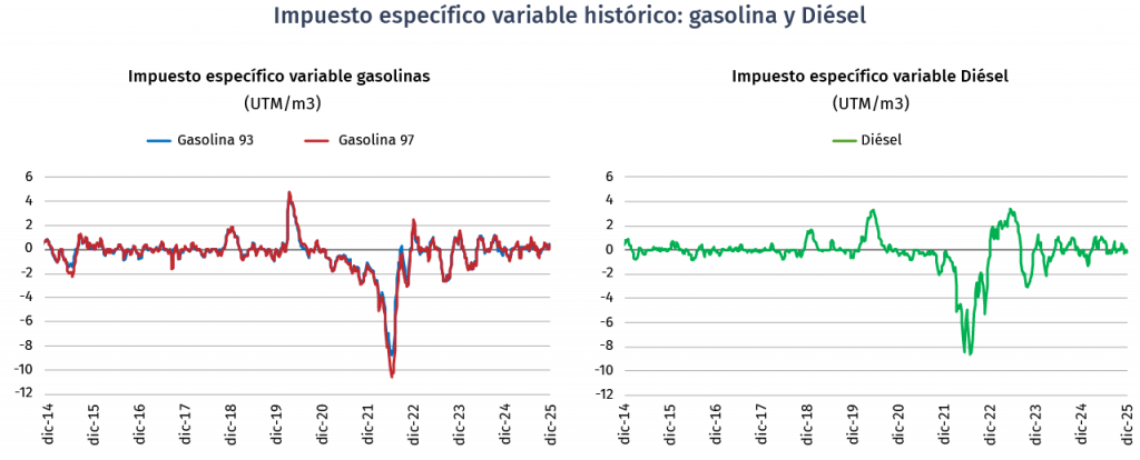 El componente variable sumado al componente base definido en la ley N° 18.502, permite obtener los valores del impuesto específico final de cada combustible incluido en MEPCO. A partir del 11 de diciembre de 2022 comienzan a regir las modificaciones introducidas por la ley N° 20.794 y el Decreto Supremo N° 1.790 que modifica su reglamento. Estas modificaciones permiten definir un impuesto específico variable diferenciado para las gasolinas según su octanaje. Además, desde el 24 de enero de 2023 comienzan a regir las modificaciones introducidas por la Ley N° 21.537 que modifica el MEPCO para evitar fluctuaciones semanales.
