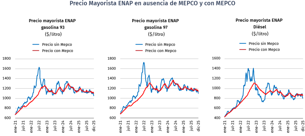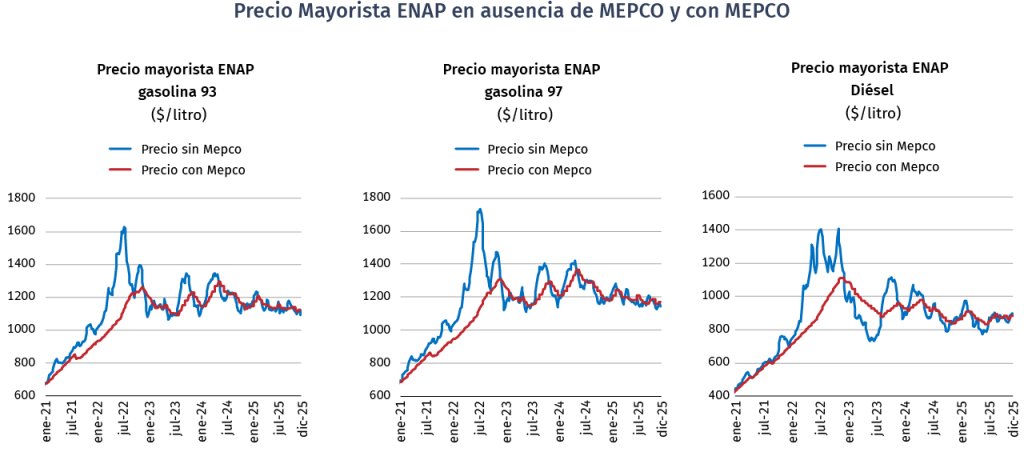 El MEPCO fue creado por la ley Nº 20.765 publicada el 09 de julio del 2014, con la finalidad de establecer un mecanismo de estabilización de los precios de venta internos de la gasolina automotriz, del petróleo diésel, del gas licuado de petróleo y del gas natural comprimido, ambos, estos últimos, de consumo vehicular. Dicho mecanismo opera a través de incrementos y rebajas a los impuestos específicos a los combustibles establecidos en la ley N° 18.502, según lo establecido en el Decreto Supremo Nº 1.119, de 2014, del Ministerio de Hacienda, que aprueba reglamento para la aplicación del MEPCO.